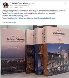 Turkish Odyssey, profesyonel bir turist rehberinin kaleminden çıkan ve İngilizce yazılmış ilk kapsamlı kültürel rehber kitaptır. Yalnızca gezilecek yerleri tanıtmakla kalmaz; Türkiye’nin geçmişini bugünün yaşayan gelenekleriyle buluşturan hikâye ve yorumlarla derinleşir.